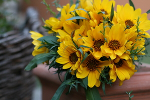 gelben Blumenstrauß in einem Topf