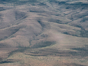 Abstand Antenne Ausbildung Aussehen Australien Besichtigung Bewegung Blick nach unten Boden Buschland Flugzeug Hinterland Höhe Land-Seite Landschaft Linien Panorama- Panoramablick Reise Schatten Sonnenlicht Sonnenschein Täler Vegetation Weite Winkel Zentral-Australien alice-Federn arial bergig bewegend entfernt fliegend gezeichnet hoch isoliert landschaftlich ländlich oben rau spärlich unten von oben- welligen