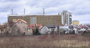 Architektur Block Blöcke Feld Fenster Haus Häuser Imielin Wohnung Wohnungen warschau Dorf Gebäude Pflug gepflügt Bäume Christentum Gras Kirche Park Rasen Religion Wolken Ziegel beten überqueren Büro Fabrik Handel Unternehmen industriell riesig