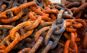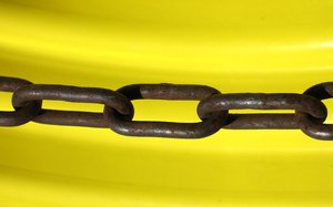 Ketten Links Rest Stahl alt Glocke Kloster Metall Stein Wand Farben Kette Textur Texturen metallisch von Eisen Fischer orange Gewicht Gleichgewicht Waage Werkzeug antik wiegen Draht Sicherheit Tor Zaun im Freien sichern Dänemark Kälte schwer Eisen Gold schwarz
