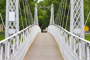 Brücke Eisen Fußgänger Gehweg Geländer Metall Spannweite aufwendig grün Bäume Gras Rock Stein Strom Wald brennen natürlich überqueren Auge Flug Flügel Kopf Schnabel Storch Vogel gelb groß hoch Bau Fan Fluss Kabel Kran Suspension Turm abstrakt Fahrbahn Spalte Stahl Transport USA Verkehr Viadukt blau Überführung Kreuzung Queensferry Straße alt neu Bogen Fußgängerbrücke Reflexion Wasser gewölbt nur Bunte Meilenstein Norden Schottland Stadt Station Zentrum edinburgh oben waverley
