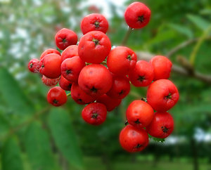 Anlage Beere Beeren Natur Wald orange Baum Busch Garten Gärtnerei Strauch rot Eberesche grüne Blätter rote Blätter Stadtpark Winter eisig gefroren Blättern Grafik Jahrgang August schwarz weiß Morgensonne fallen Lebensmittel Sommer hum Beeren