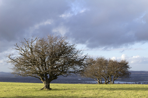 Flowering hawthorn tree