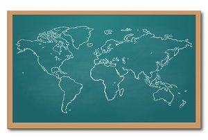 Weltkarte auf einer Tafel