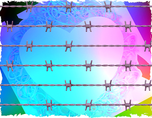 Gefangenen der Liebe, Abbildung, Design, Dorn, Draht, Farbe, Form, Gefängnis, Grafik, Grenze, Herz, Hintergrund, Konzept, Liebe, Metall, Objekt, Schmerz, Schutz, Sicherheit, Silber, Stachel-, Stahl, Stress, Symbol, Vektor, Verteidigung, Wasser, abstrakt, begrifflich, blau, gefangen, grün, kreativ, lila, rosa, scharf, valentine, verletzt, weiß