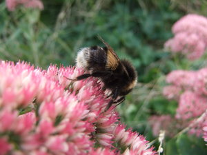 Hummel auf rosa Blumen